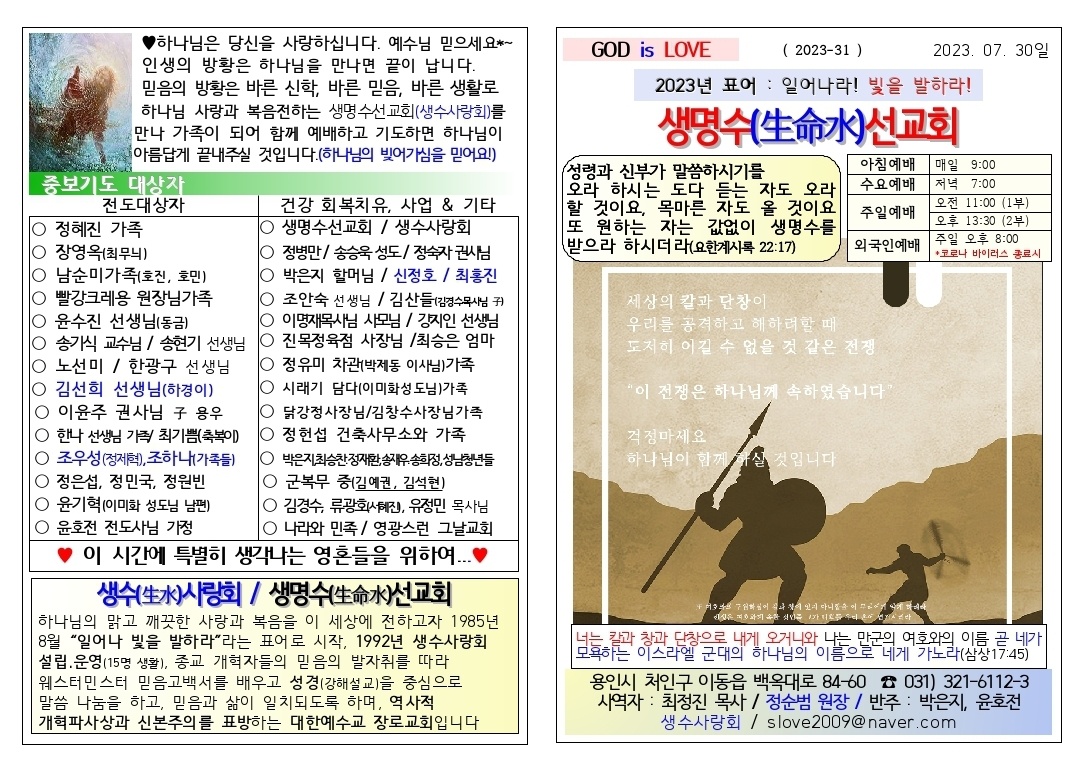 [주보] 2023년 7월 30일 용인 생명수 선교회