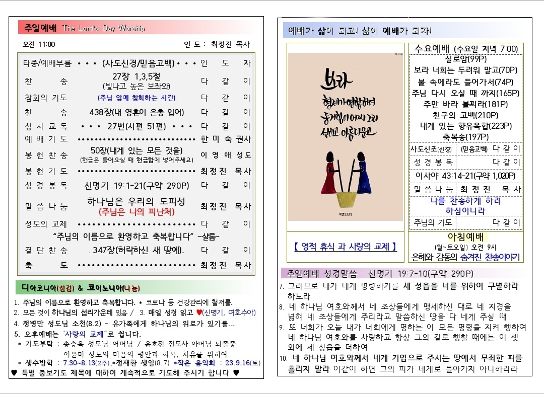 [주보] 2023년 8월 6일 용인 생명수 선교회