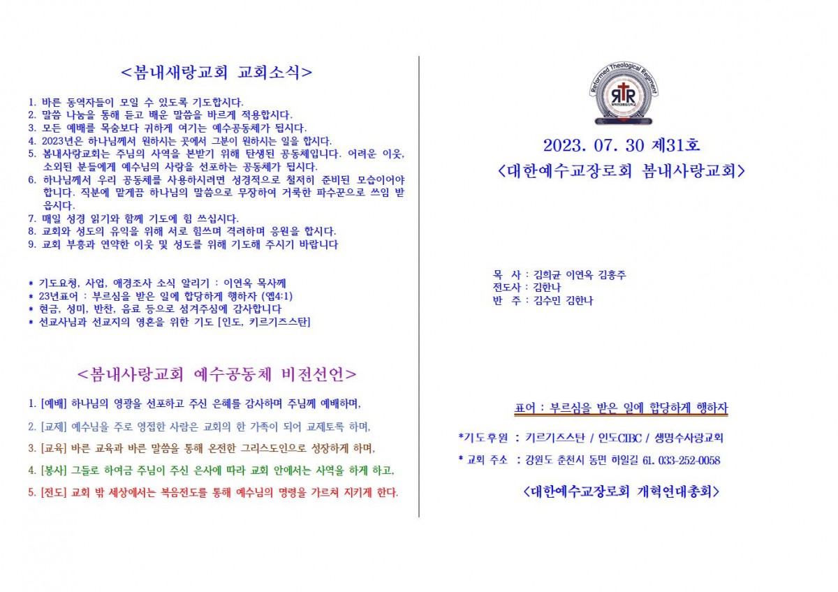 [주보] 2023년 7월 30일 춘천 봄내사랑교회 페이지 정보 작성자 관리자 댓글 0건 조회 101회 작성일 23-08-13 21:54 본문 [주보] 2023년 7월 30일 춘천 봄내사랑교회 목록 답변 이전글[주보] 2023년 8월 13일 춘천 봄내사랑교회 23.08.13 다음글[성경통독] 08.07. - 08.13. 23.08.06 댓글목록 댓글목록 등록된 댓글이 없습니다.