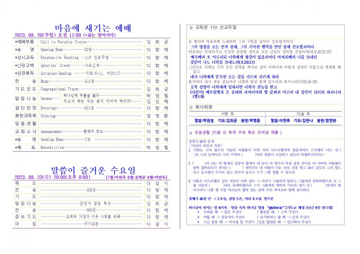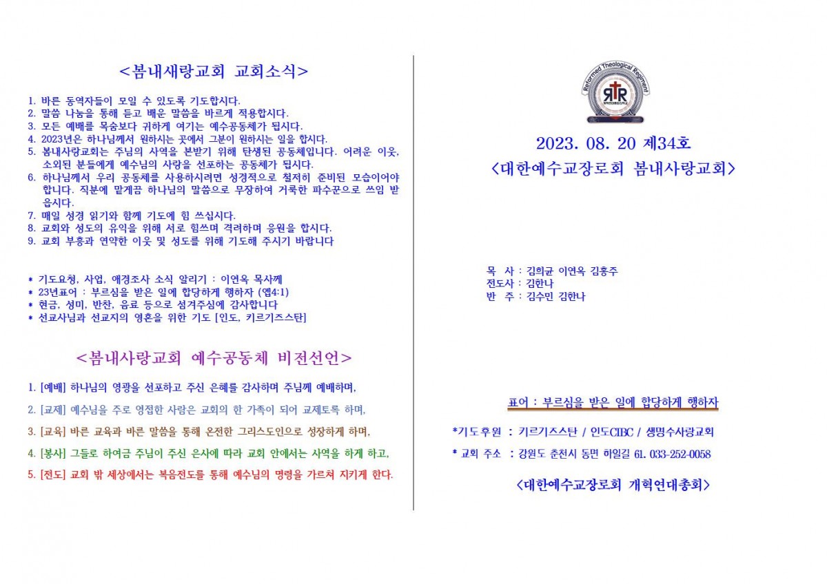 [주보] 2023년 8월 20일 춘천 봄내사랑교회 페이지 정보 작성자 관리자 댓글 0건 조회 105회 작성일 23-08-22 20:20 본문 [주보] 2023년 8월 20일 춘천 봄내사랑교회 목록 답변 이전글이번 주 성경통독은 에스겔 입니다 ♡ 23.08.23 다음글[주보] 2023년 8월 06일 춘천 봄내사랑교회 23.08.13 댓글목록 댓글목록 등록된 댓글이 없습니다.