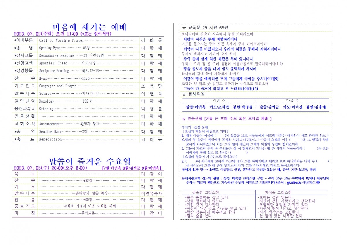 [주보] 2023년 7월 02일 춘천 봄내사랑교회 페이지 정보 작성자 관리자 댓글 0건 조회 92회 작성일 23-07-02 17:23 본문 [주보] 2023년 7월 02일 춘천 봄내사랑교회 목록 답변 이전글[성경통독] 2023. 07. 03. - 07. 09. 23.07.02 다음글창세기41장 통독 및 문제 23.06.26 댓글목록 댓글목록 등록된 댓글이 없습니다.