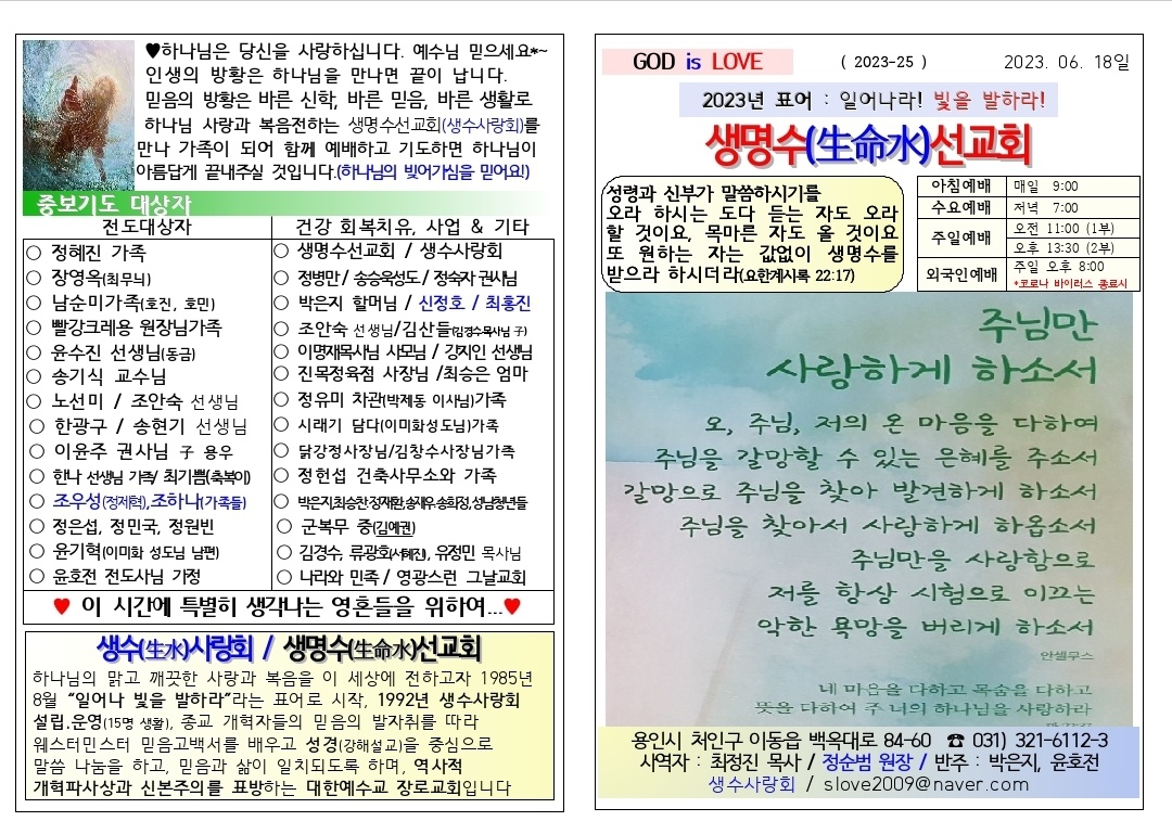 [주보] 2023년 6월 18일 용인 생명수 선교회