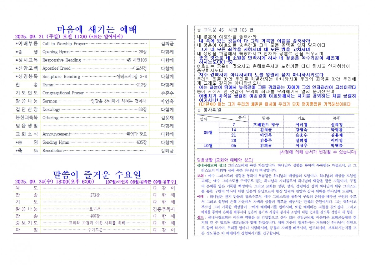[주보] 2025년 09월 21일 38호 춘천 봄내사랑교회 페이지 정보 작성자 관리자 댓글 0건 조회 18회 작성일 25-09-29 14:48 본문 [주보] 2025년 09월 21일 38호 춘천 봄내사랑교회 목록 답변 이전글[주보] 2025년 09월 28일 39호 춘천 봄내사랑교회 25.09.29 다음글[주보] 2025년 09월 14일 37호 춘천 봄내사랑교회 25.09.29 댓글목록 댓글목록 등록된 댓글이 없습니다.