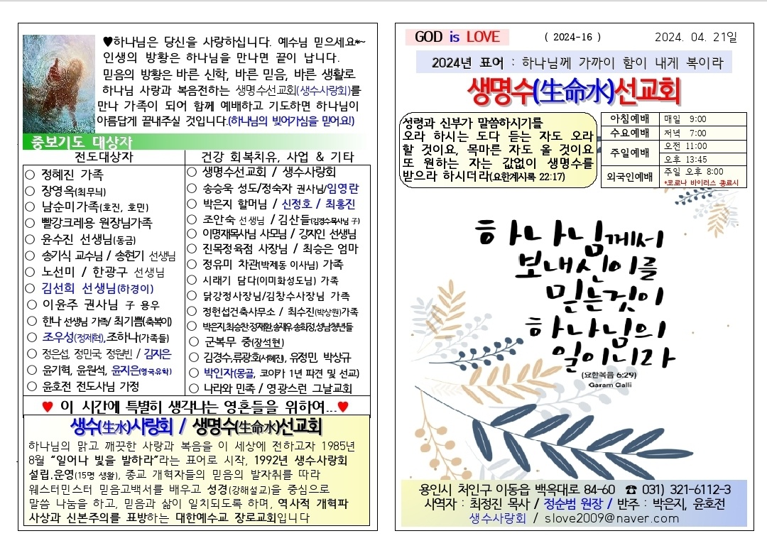 [주보] 2024년04월21일 용인 생명수 선교회