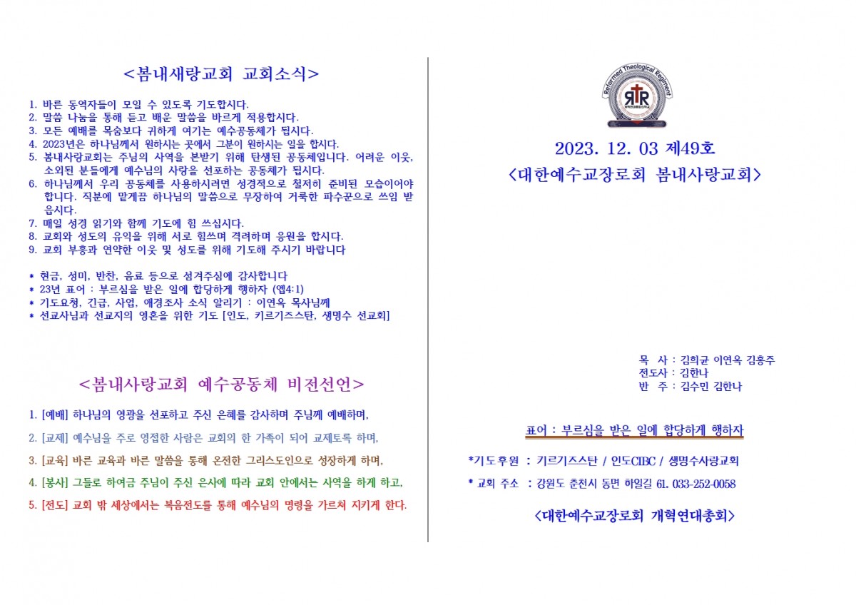 [주보] 2023년 12월 03일 춘천 봄내사랑교회 페이지 정보 작성자 관리자 댓글 0건 조회 41회 작성일 23-12-12 19:13 본문 [주보] 2023년 12월 03일 춘천 봄내사랑교회 목록 답변 이전글[주보] 2023년12월10일 용인 생명수 선교회 23.12.25 다음글[주보] 2023년 12월 10일 춘천 봄내사랑교회 23.12.12 댓글목록 댓글목록 등록된 댓글이 없습니다.