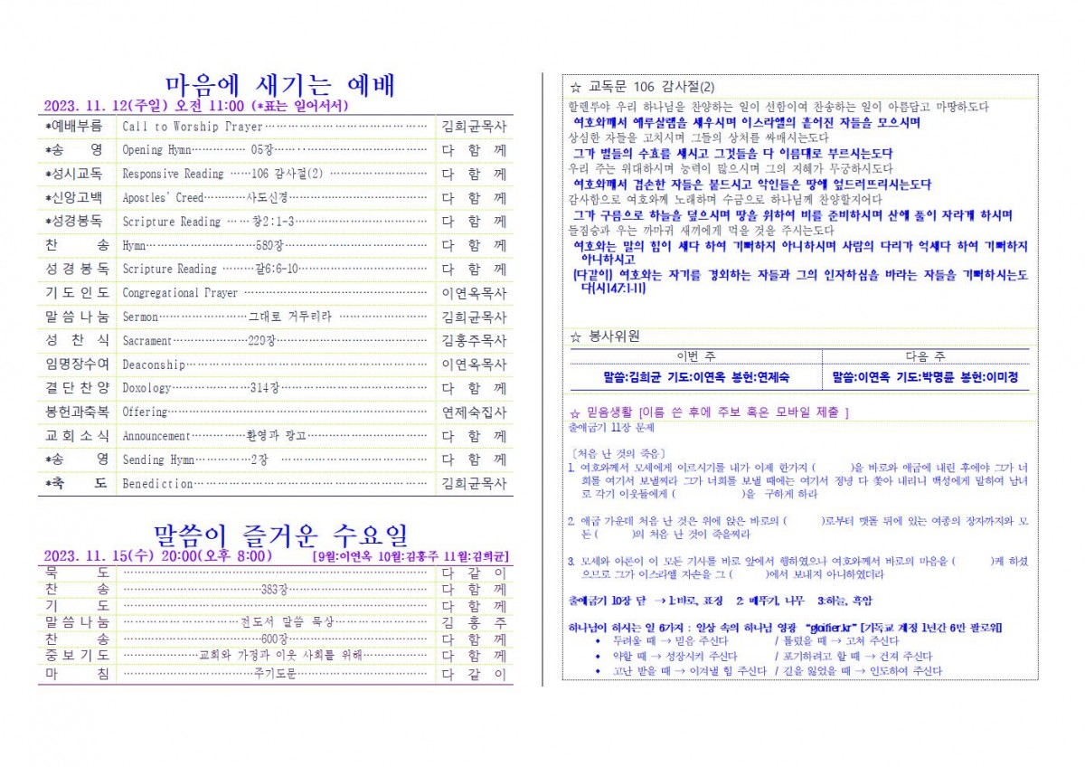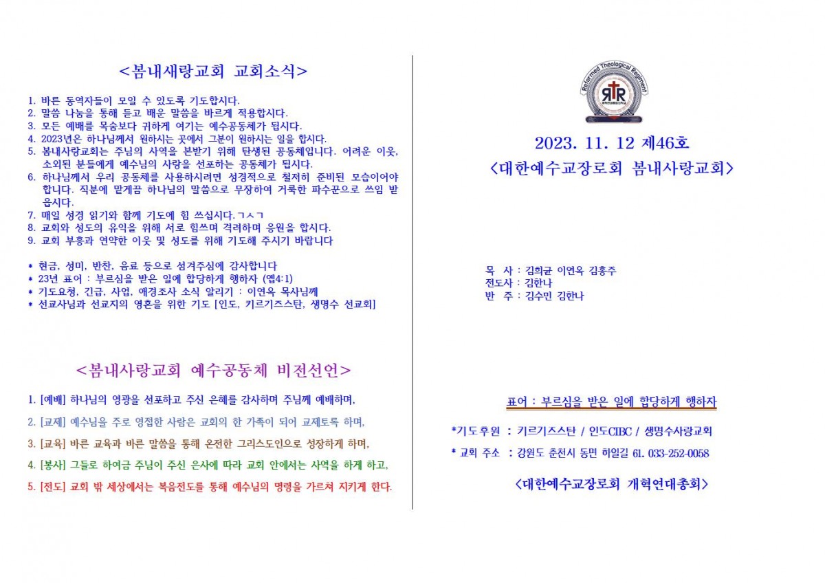 [주보] 2023년 11월 12일 춘천 봄내사랑교회 페이지 정보 작성자 관리자 댓글 0건 조회 59회 작성일 23-11-14 21:58 본문 [주보] 2023년 11월 12일 춘천 봄내사랑교회 목록 답변 이전글[주보] 2023년 11월 19일 춘천 봄내사랑교회 23.11.21 다음글[주보] 2023년11월12일 용인 생명수 선교회 23.11.12 댓글목록 댓글목록 등록된 댓글이 없습니다.