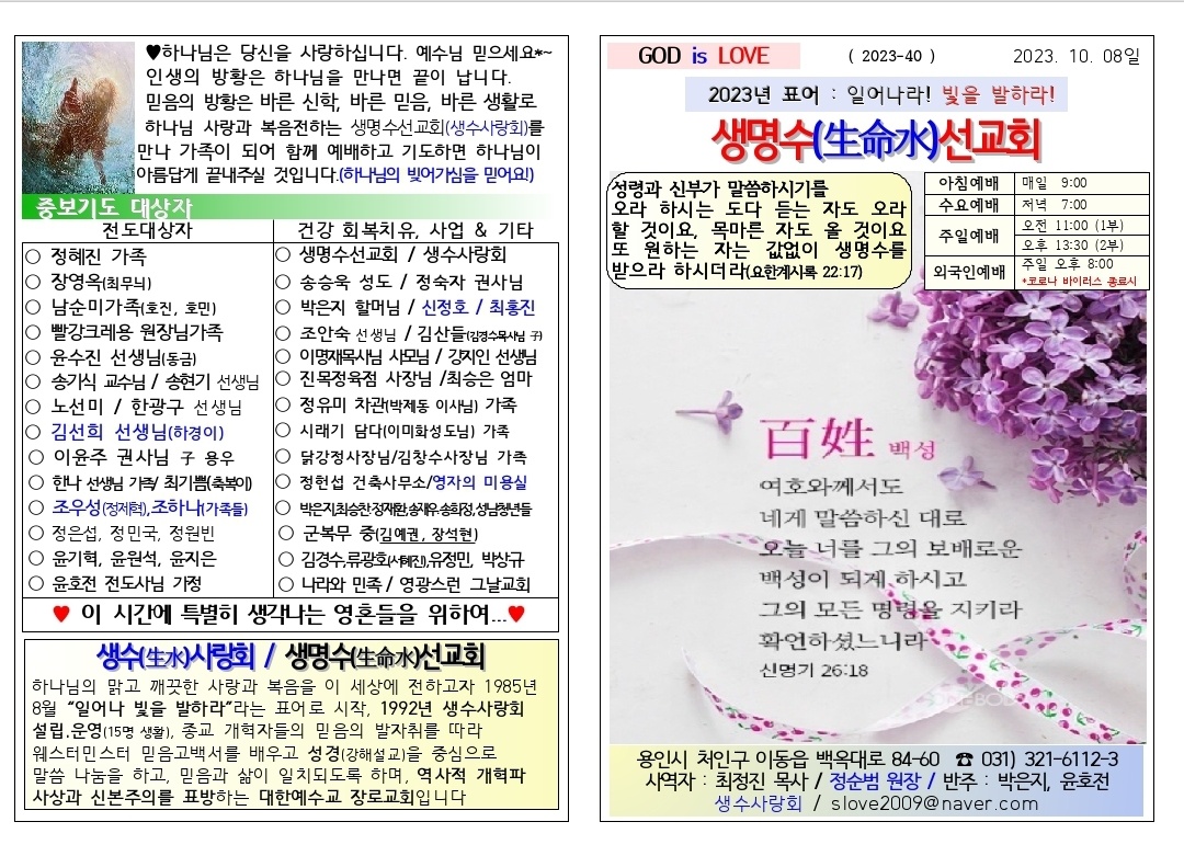 [주보] 2023년 10월 08일 용인 생명수 선교회