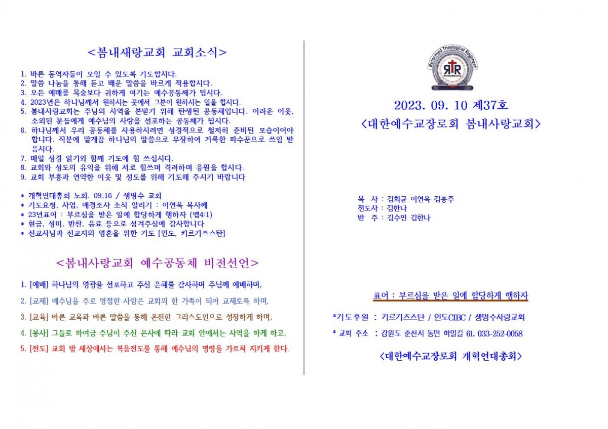 [주보] 2023년 9월 10일 춘천 봄내사랑교회 페이지 정보 작성자 관리자 댓글 0건 조회 94회 작성일 23-09-12 19:08 본문 [주보] 2023년 9월 10일 춘천 봄내사랑교회 목록 답변 이전글[주보] 2023년 9월 17일 춘천 봄내사랑교회 23.09.21 다음글[주보] 2023년 9월 10일 용인 생명수 선교회 23.09.10 댓글목록 댓글목록 등록된 댓글이 없습니다.