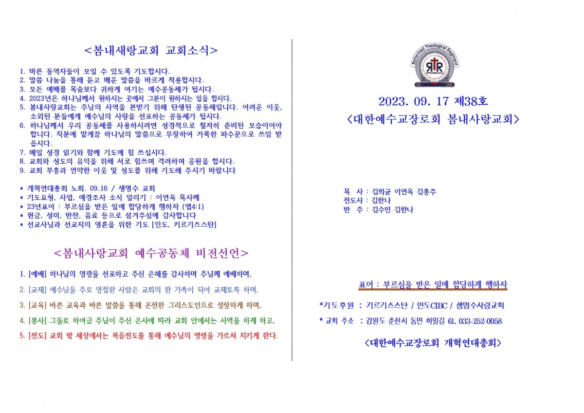 [주보] 2023년 9월 17일 춘천 봄내사랑교회 페이지 정보 작성자 관리자 댓글 0건 조회 85회 작성일 23-09-21 20:35 본문 [주보] 2023년 9월 17일 춘천 봄내사랑교회 목록 답변 이전글[주보] 2023년 9월 24일 용인 생명수 선교회 23.09.24 다음글[주보] 2023년 9월 10일 춘천 봄내사랑교회 23.09.12 댓글목록 댓글목록 등록된 댓글이 없습니다.
