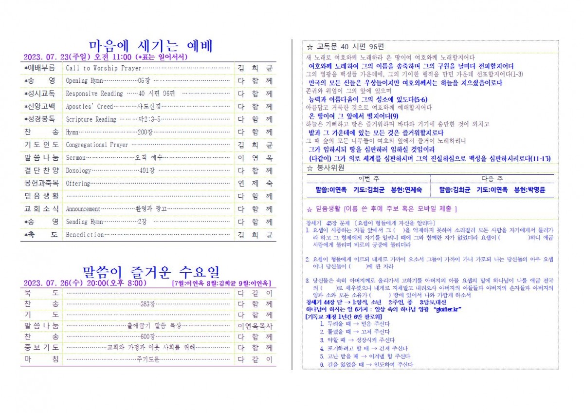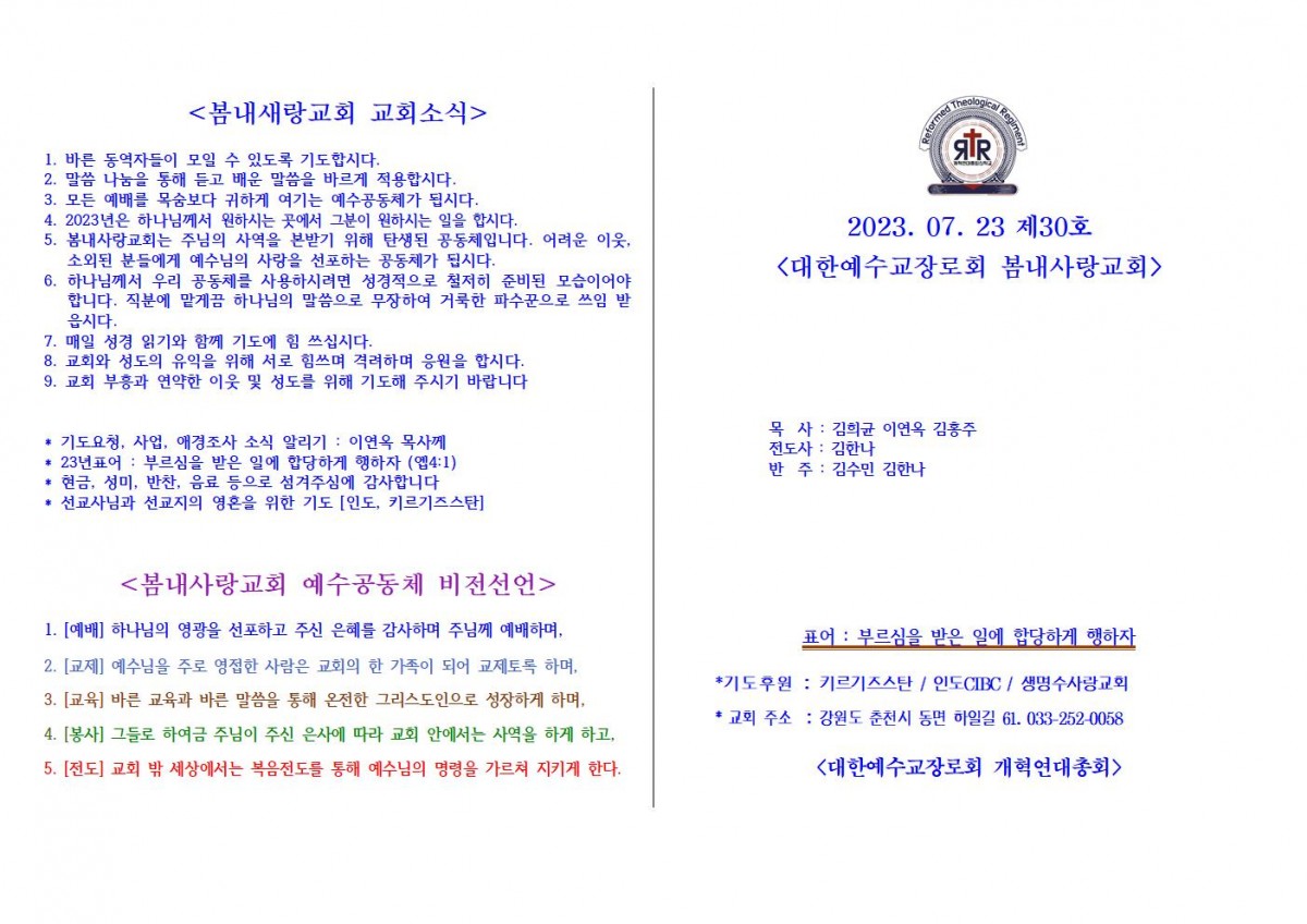 [주보] 2023년 7월 23일 춘천 봄내사랑교회 페이지 정보 작성자 관리자 댓글 0건 조회 92회 작성일 23-07-25 22:23 본문 [주보] 2023년 7월 23일 춘천 봄내사랑교회 목록 답변 이전글[주보] 2023년 7월 30일 용인 생명수 선교회 23.07.31 다음글[주보] 2023년 7월 23일 용인 생명수 선교회 23.07.24 댓글목록 댓글목록 등록된 댓글이 없습니다.