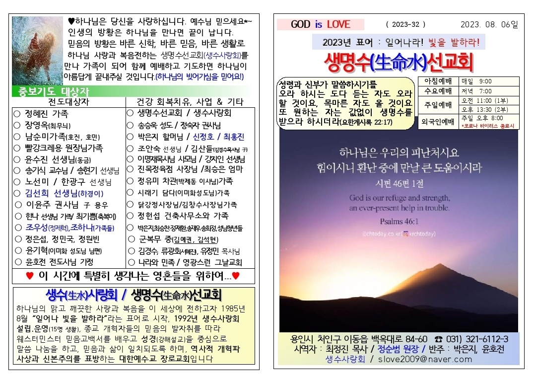 [주보] 2023년 8월 6일 용인 생명수 선교회