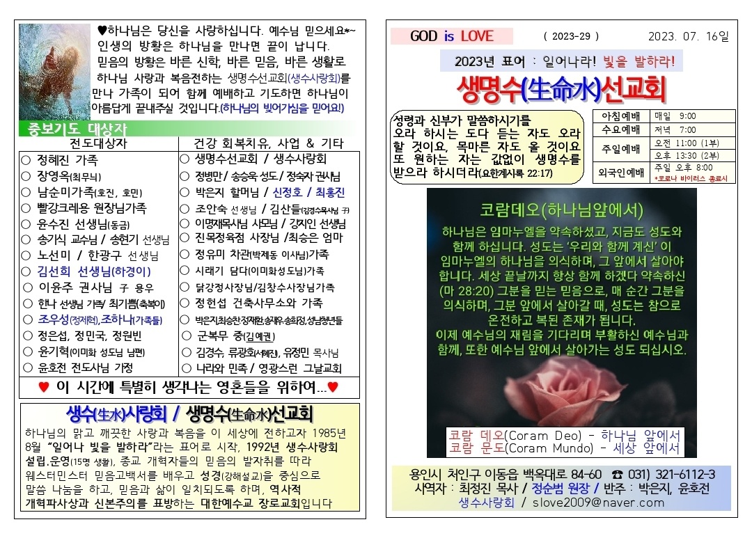 [주보] 2023년 7월 16일 용인 생명수 선교회