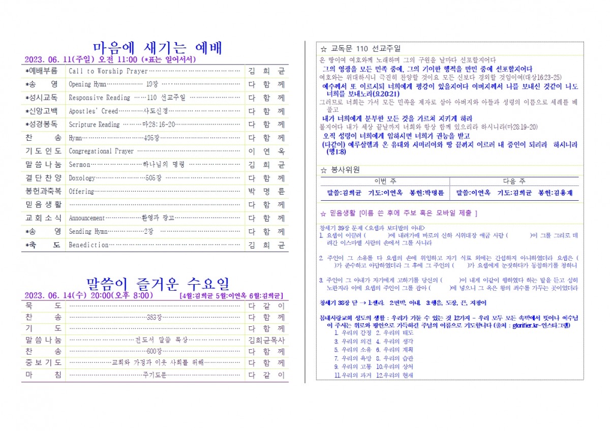 [주보] 2023년 6월 11일 춘천 봄내사랑교회 페이지 정보 작성자 관리자 댓글 0건 조회 86회 작성일 23-06-13 19:42 본문 2023년 6월 11일 제07권 24호 춘천 봄내사랑교회 목록 답변 이전글[주보] 2023년 6월 18일 용인 생명수 선교회 23.06.18 다음글[성경통독] 시편 (2023.06.12. - 06.18.) 23.06.11 댓글목록 댓글목록 등록된 댓글이 없습니다.