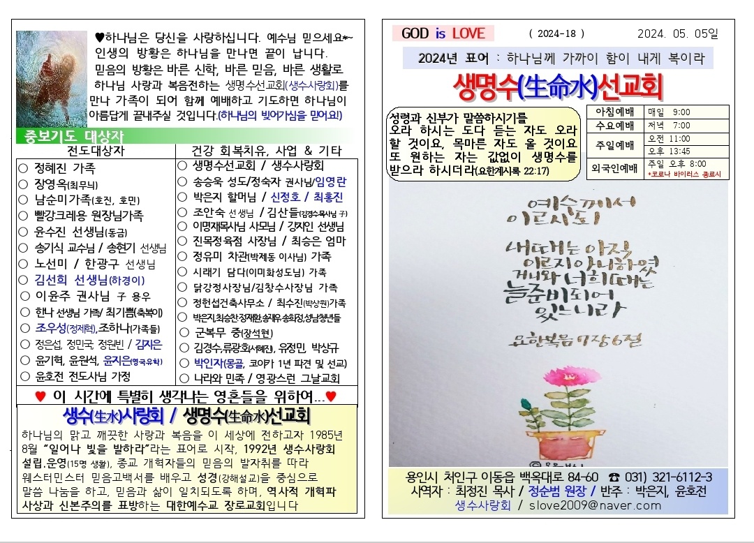 [주보] 2024년05월05일 용인 생명수 선교회