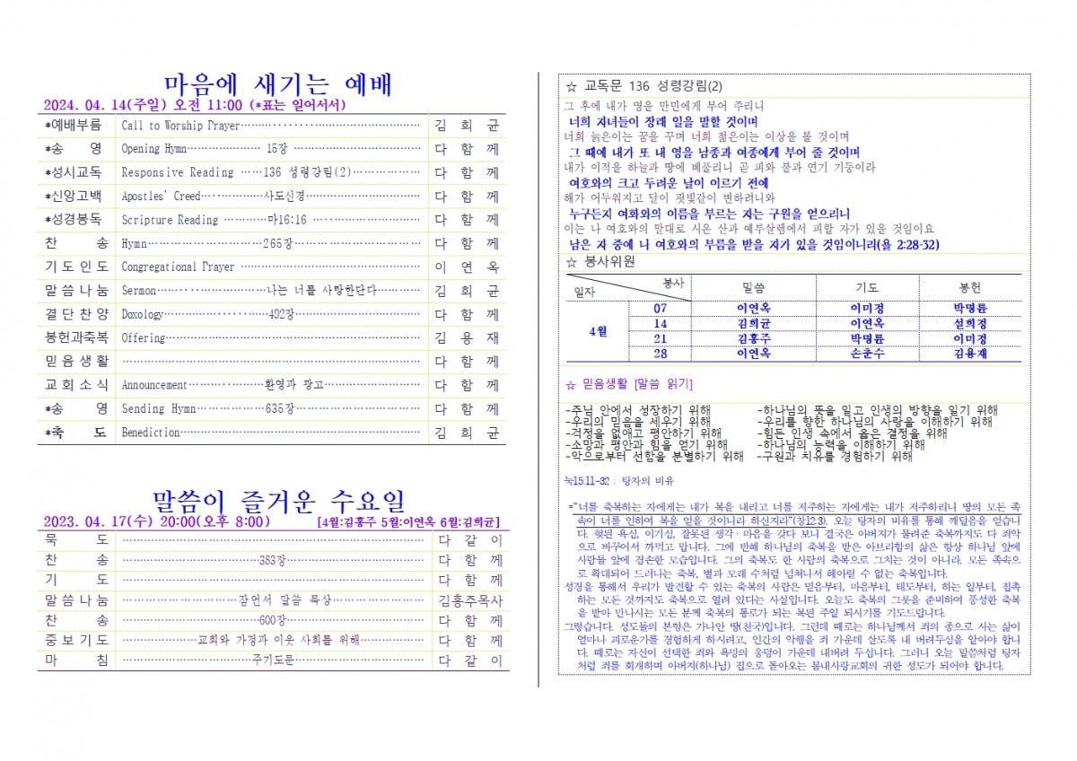 [주보] 2024년 04월 14일 춘천 봄내사랑교회 페이지 정보 작성자 관리자 댓글 0건 조회 17회 작성일 24-05-12 08:57 본문 [주보] 2024년 04월 14일 춘천 봄내사랑교회 목록 답변 이전글[주보] 2024년 04월 21일 춘천 봄내사랑교회 24.05.12 다음글[주보] 2024년05월05일 용인 생명수 선교회 24.05.06 댓글목록 댓글목록 등록된 댓글이 없습니다.