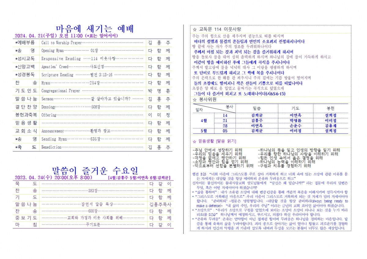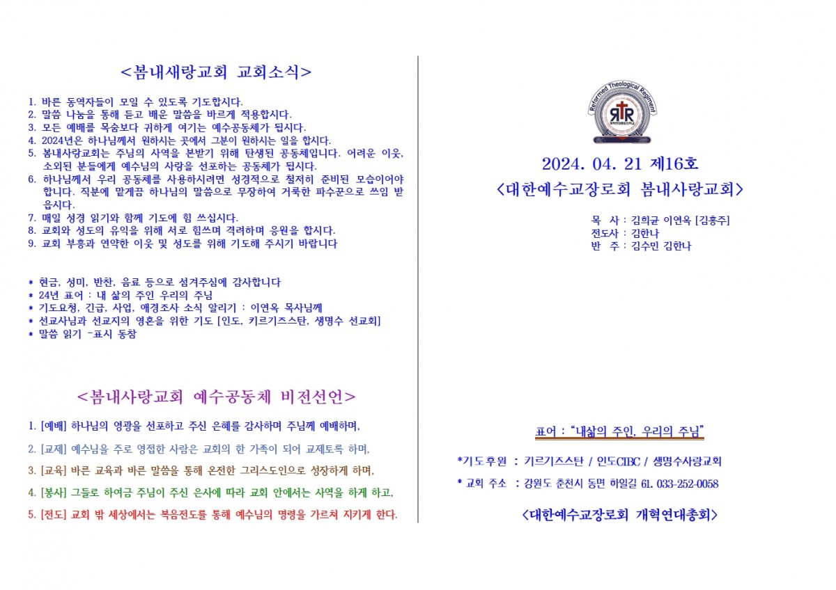 [주보] 2024년 04월 21일 춘천 봄내사랑교회 페이지 정보 작성자 관리자 댓글 0건 조회 10회 작성일 24-05-12 08:58 본문 [주보] 2024년 04월 21일 춘천 봄내사랑교회 목록 답변 이전글[주보] 2024년 04월 28일 춘천 봄내사랑교회 24.05.12 다음글[주보] 2024년 04월 14일 춘천 봄내사랑교회 24.05.12 댓글목록 댓글목록 등록된 댓글이 없습니다.