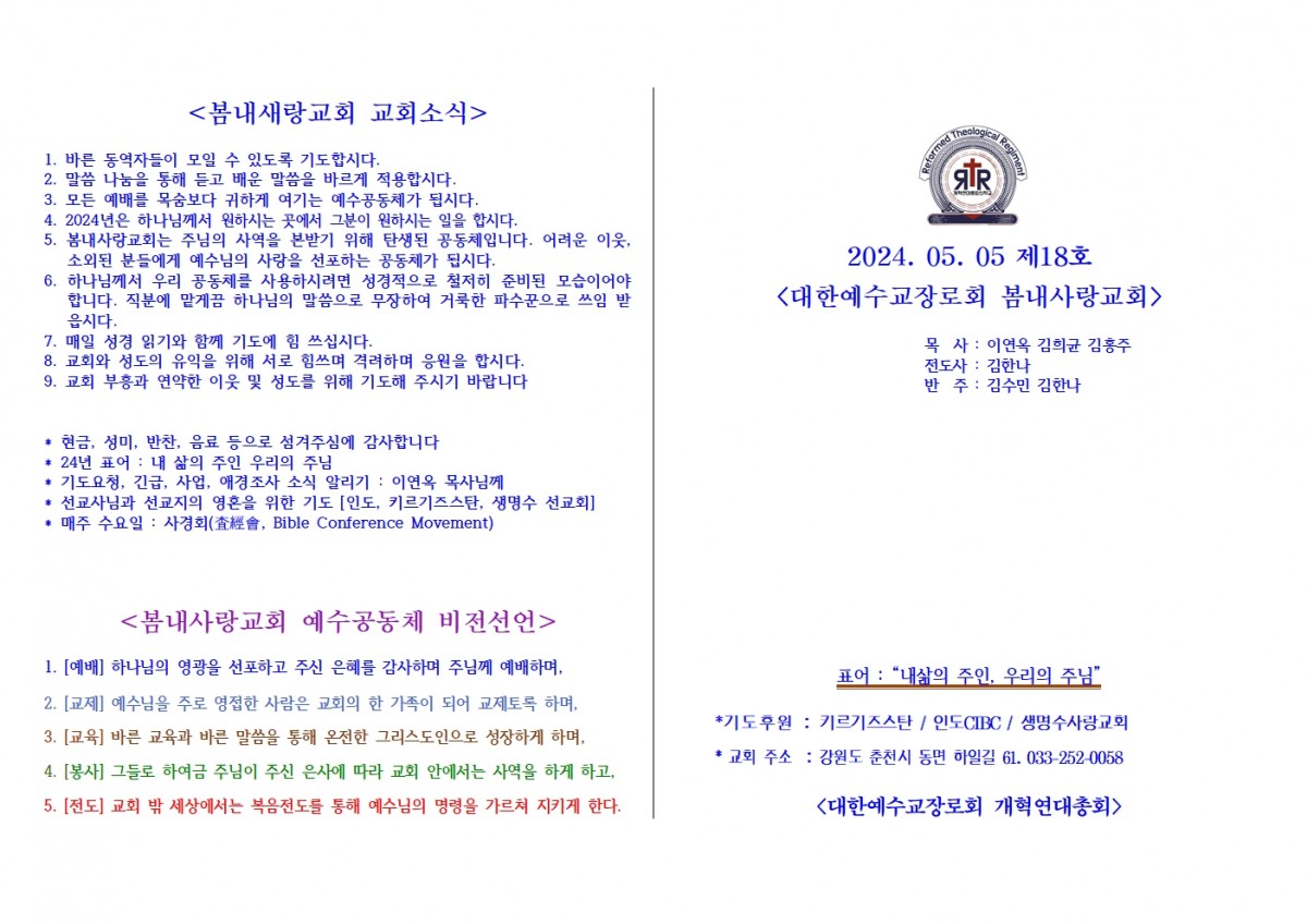 [주보] 2024년 05월 05일 춘천 봄내사랑교회 페이지 정보 작성자 관리자 댓글 0건 조회 16회 작성일 24-05-12 08:59 본문 [주보] 2024년 05월 05일 춘천 봄내사랑교회 목록 답변 이전글[주보] 2024년 05월 12일 춘천 봄내사랑교회 24.05.12 다음글[주보] 2024년 04월 28일 춘천 봄내사랑교회 24.05.12 댓글목록 댓글목록 등록된 댓글이 없습니다.
