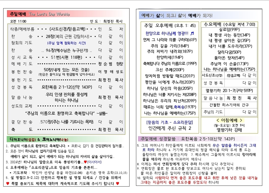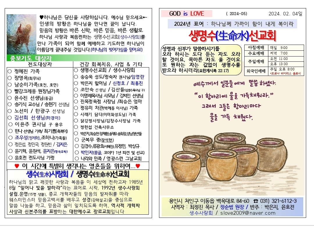 [주보] 2024년02월04일 용인 생명수 선교회