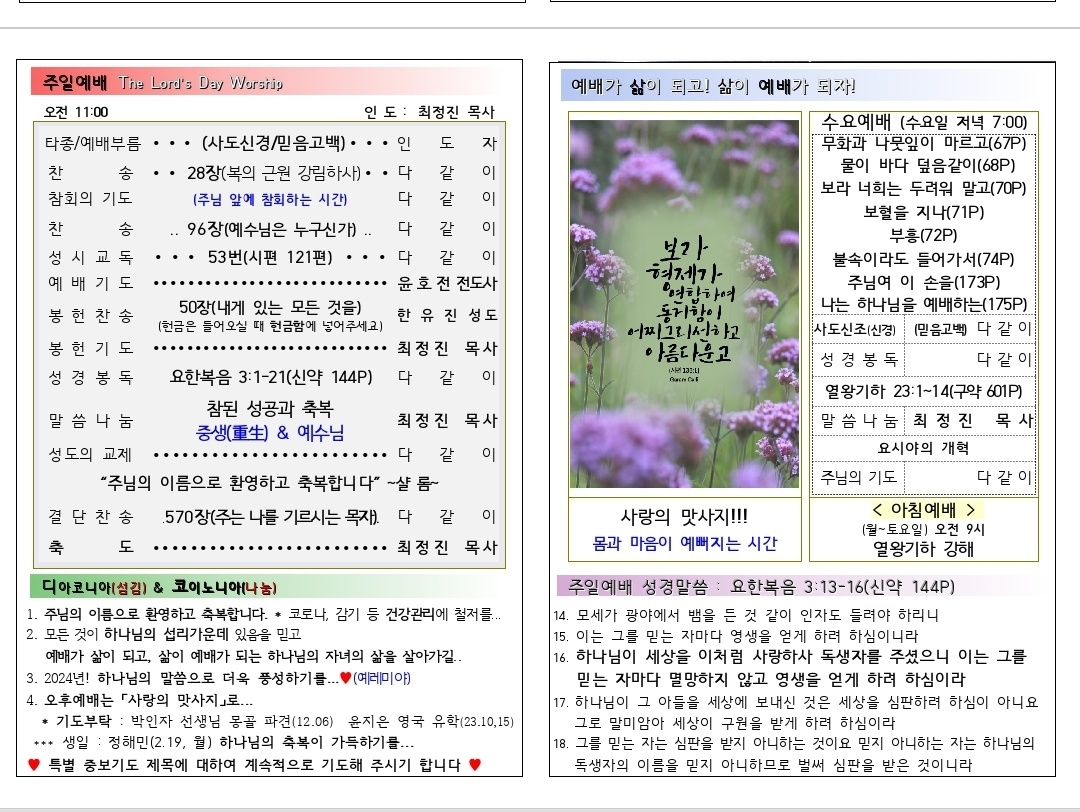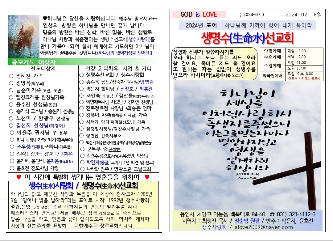 [주보] 2024년02월18일 용인 생명수 선교회