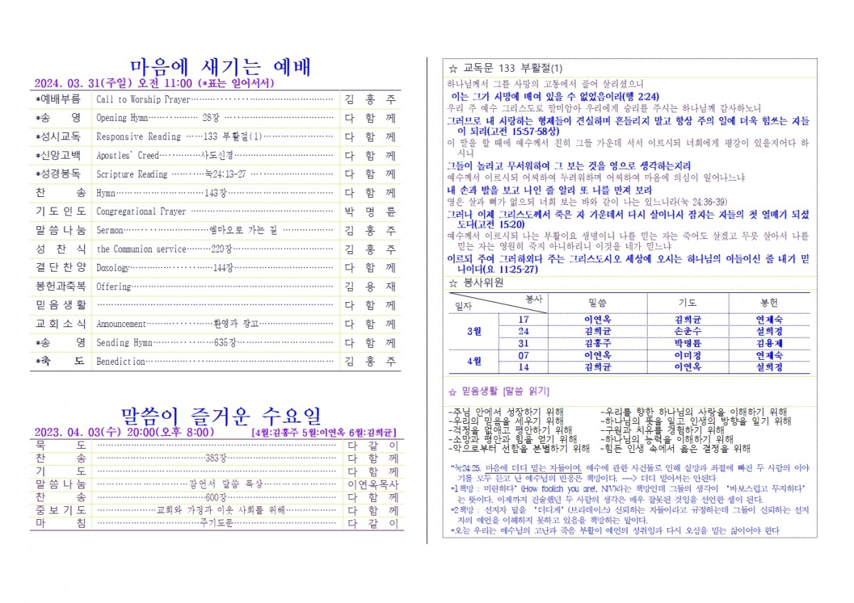 [주보] 2024년 03월 31일 춘천 봄내사랑교회 페이지 정보 작성자 관리자 댓글 0건 조회 21회 작성일 24-03-31 09:07 본문 [주보] 2024년 03월 31일 춘천 봄내사랑교회 목록 답변 이전글[주보] 2024년03월24일 용인 생명수 선교회 24.04.02 다음글[주보] 2024년 03월 24일 춘천 봄내사랑교회 24.03.24 댓글목록 댓글목록 등록된 댓글이 없습니다.