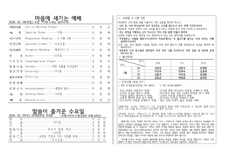 [주보] 2024년 02월 04일 춘천 봄내사랑교회 페이지 정보 작성자 관리자 댓글 0건 조회 24회 작성일 24-02-04 10:39 본문 [주보] 2024년 02월 04일 춘천 봄내사랑교회 목록 답변 이전글[주보] 2024년02월11일 용인 생명수 선교회 24.02.12 다음글[주보] 2024년 01월 21일 춘천 봄내사랑교회 24.01.30 댓글목록 댓글목록 등록된 댓글이 없습니다.