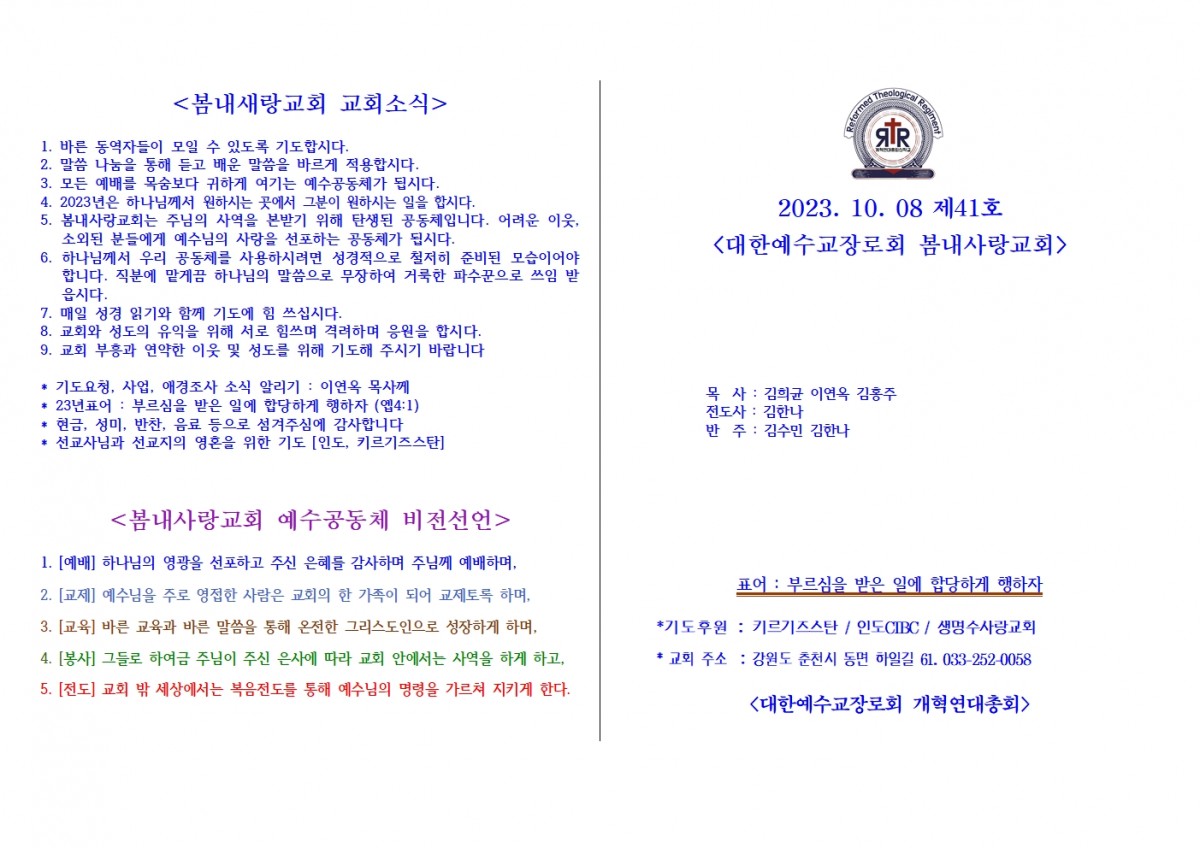 [주보] 2023년 10월 08일 춘천 봄내사랑교회 페이지 정보 작성자 관리자 댓글 0건 조회 70회 작성일 23-10-11 01:31 본문 [주보] 2023년 10월 08일 춘천 봄내사랑교회 목록 답변 이전글[주보] 2023년 10월 08일 용인 생명수 선교회 23.10.15 다음글[주보] 2023년 10월 01일 춘천 봄내사랑교회 23.10.01 댓글목록 댓글목록 등록된 댓글이 없습니다.