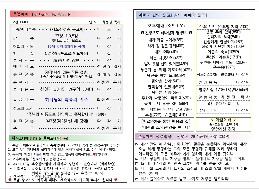 [주보] 2023년 10월 29일 용인 생명수 선교회