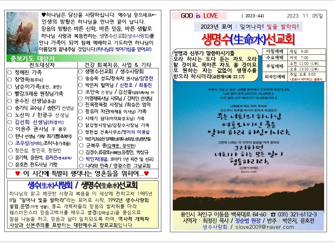 [주보] 2023년 11월 5일 용인 생명수 선교회