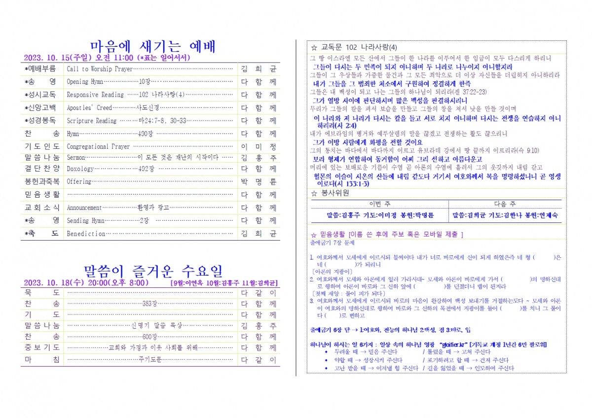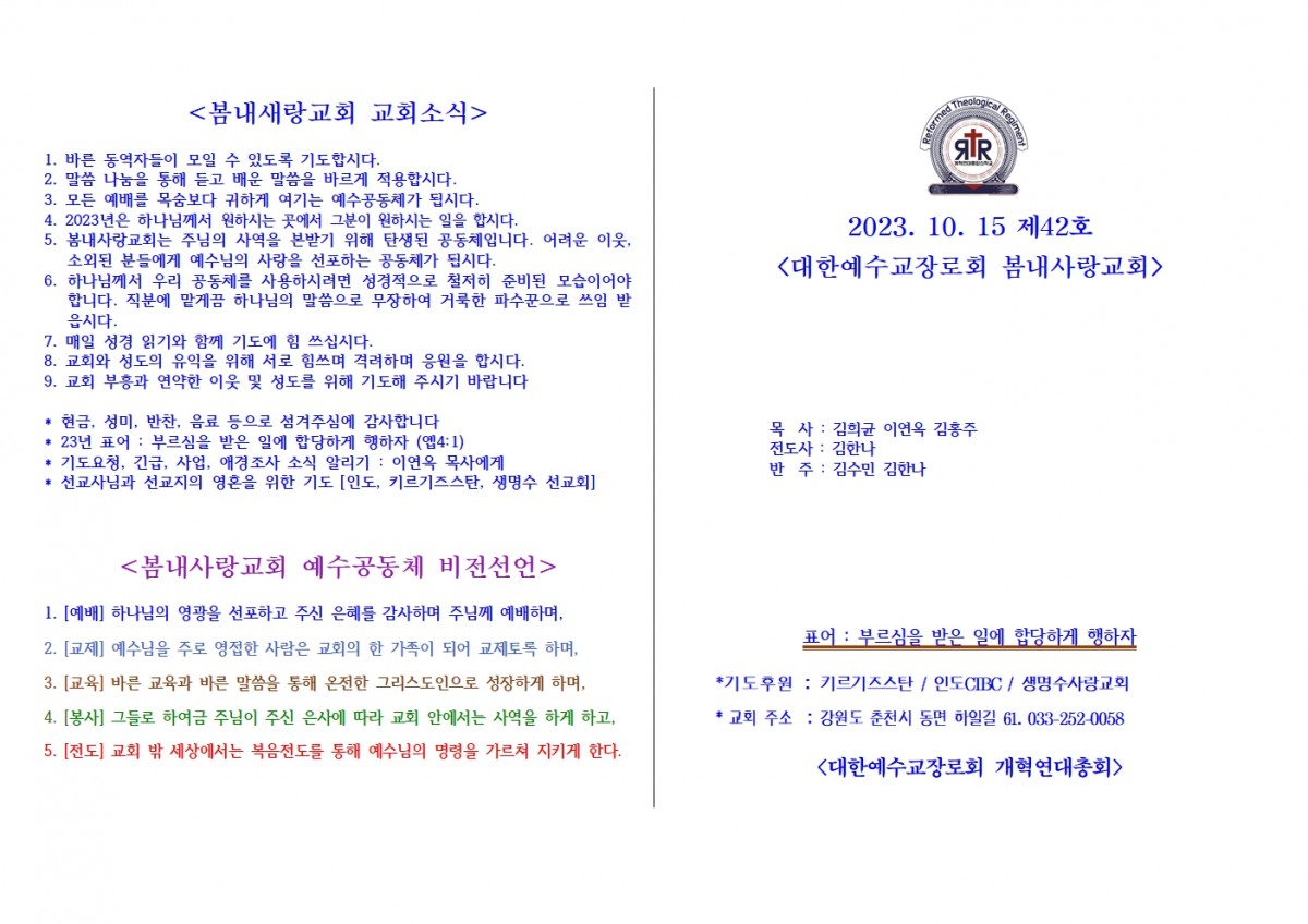 [주보] 2023년 10월 15일 춘천 봄내사랑교회 페이지 정보 작성자 관리자 댓글 0건 조회 36회 작성일 23-11-06 22:32 본문 [주보] 2023년 10월 15일 춘천 봄내사랑교회 목록 답변 이전글[주보] 2023년 10월 22일 춘천 봄내사랑교회 23.11.06 다음글(공지) 엘림노회 개최 23.11.05 댓글목록 댓글목록 등록된 댓글이 없습니다.