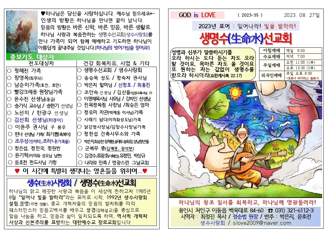 [주보] 2023년 8월 27일 용인 생명수 선교회